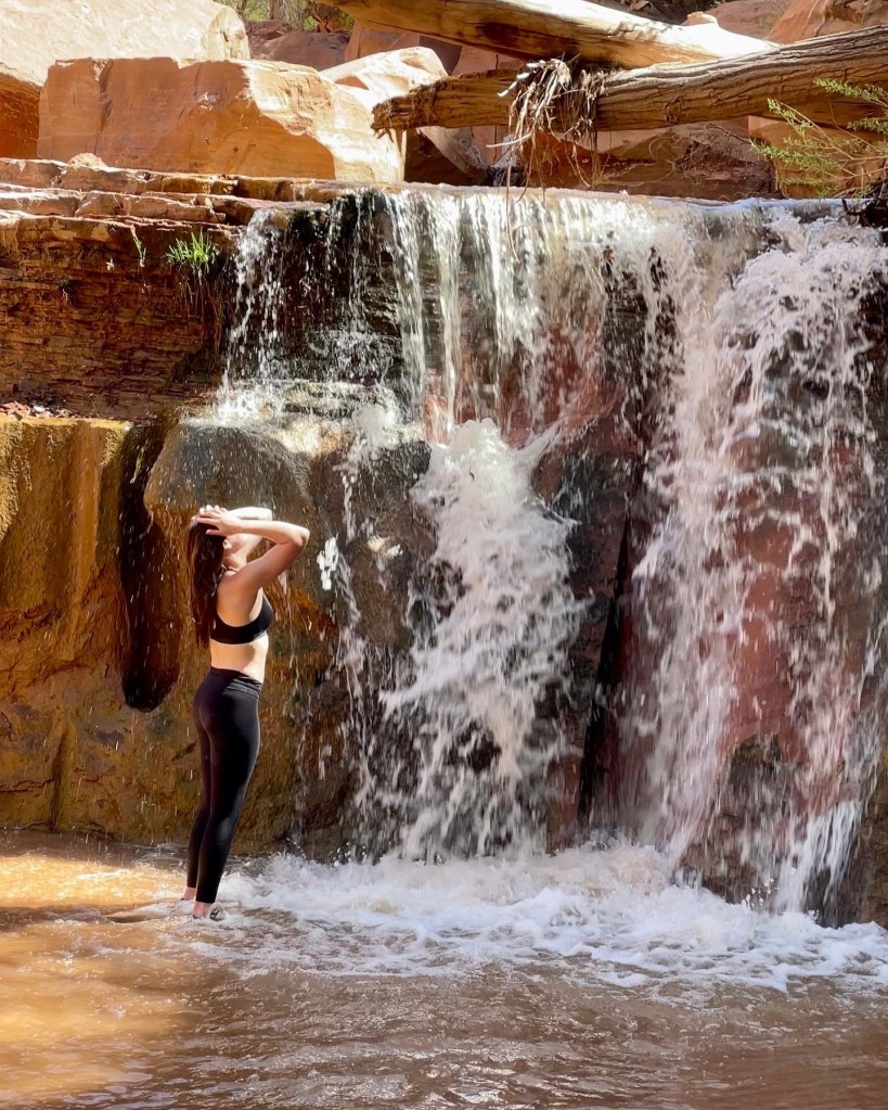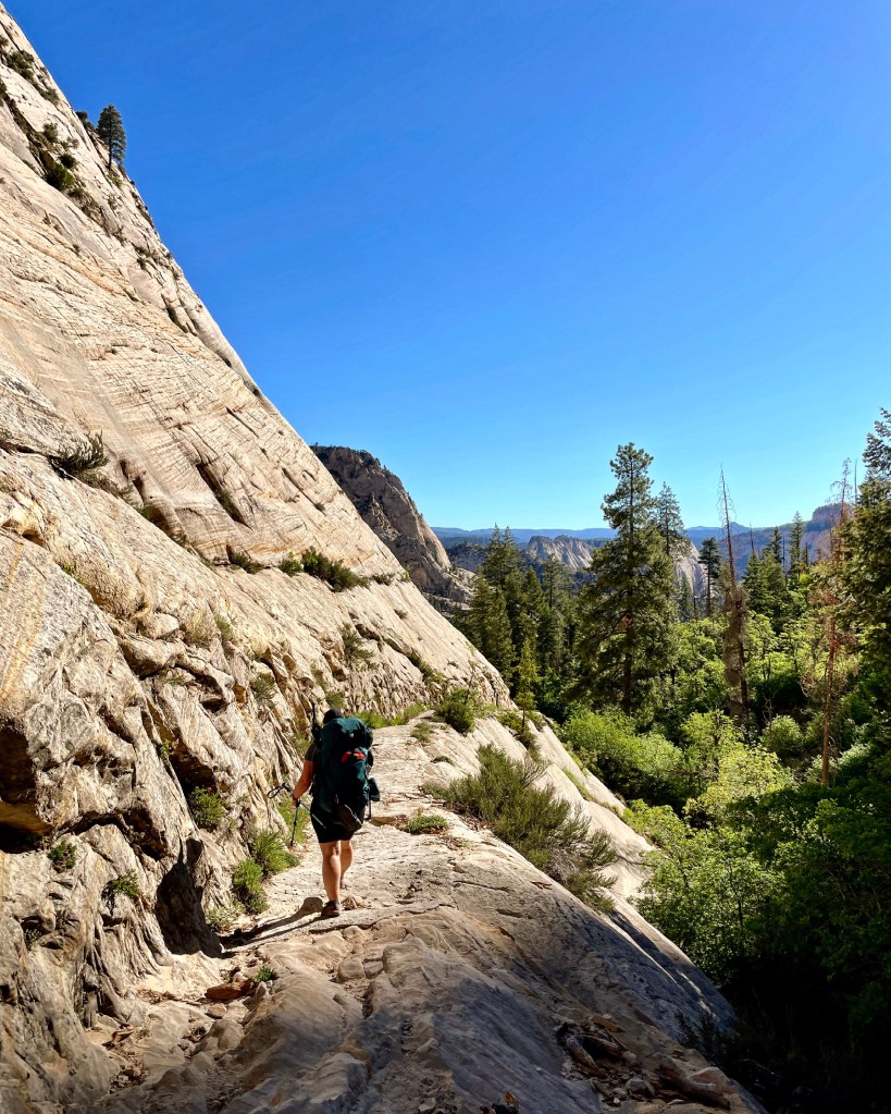 The next push after Cliff Arch was to another waterfall not too far away. I’d say maybe a half mile. There is a down climb and going starts to get really slow from here on out. You’ll traverse over several rock ledges and climb a steep narrow trail w a lot of exposure to one side. After you’ve walked this trail you’ll have to down climb a pretty decent amount. There are a few cairn stones to follow. So keep your eyes peeled or it will feel like you got cliffed out.