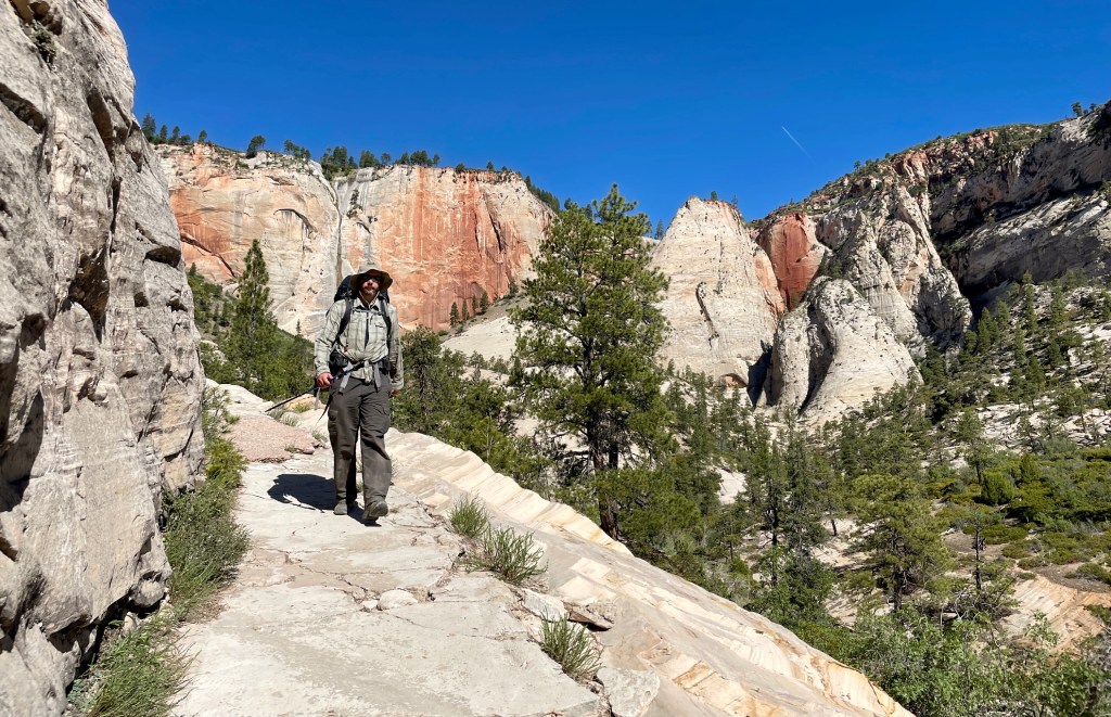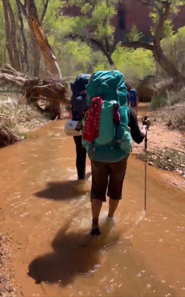 The hike from the Jacob Hamblin TH (tanks/sneaker) starts out for the first half mile over sand. The trail is very intuitive. You can clearly see the path most taken. After you’ll hit slick rock and be looking for cairn stones. You’ll rollercoaster, but the cairn stones are fairly close together and easy to spot. I still highly recommend gps. Being out in this area it’s easy to understand how people get lost in the desert. Everything looks the same. It’s hot and unforgiving above the canyon. Even in early spring the temps were brutal. There are no water sources until you get to the bottom of the canyon. We burned through a liter a person just doing the short 1.8 mile hike to where you’ll drop into the canyon. As I said, it’s hot AF.