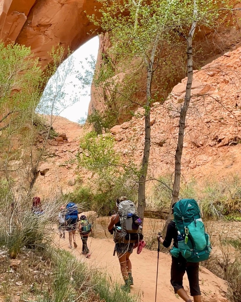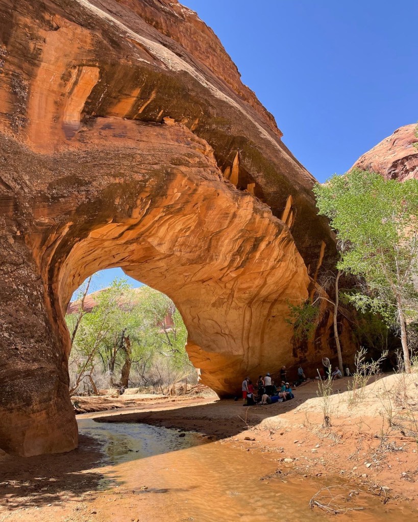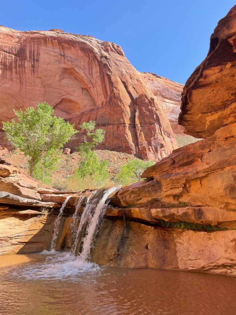 Coyote Arch to Cliff Arch is where you’ll start slowing down w pace. It’s usually pretty schwacky in areas and the trail isn’t always easily identifiable leaving you burning time walking through the river. It’s also hot in this portion too. This is my least favorite section. It has a lot of big group camp sites, but I’ve never seen anyone at them. Right before the waterfall by Cliff Arch there’s an old rock slide you’ll navigate through. It’s easier if you remain left and high. You can get there either way though.
