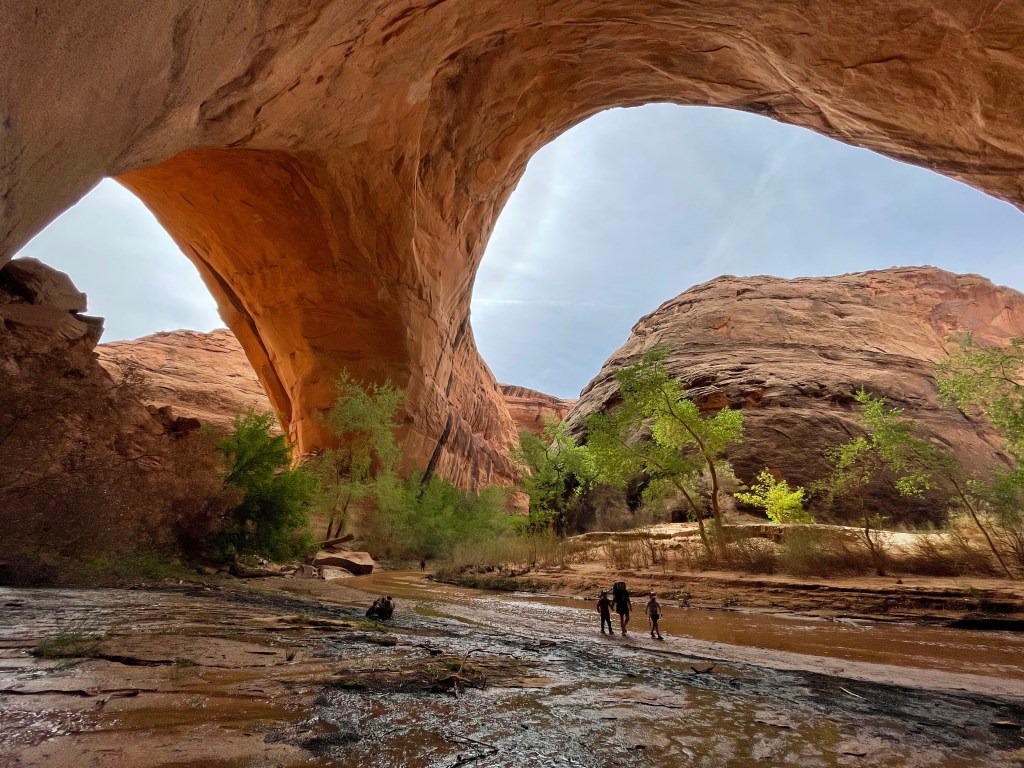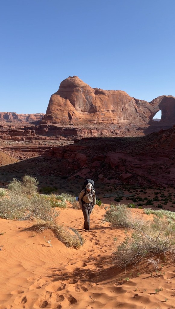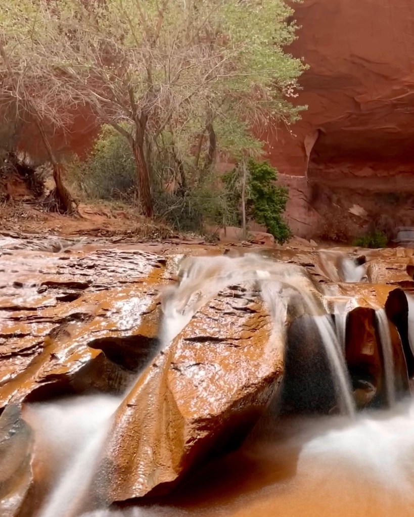 Day two we made our way towards the crack exit. There were a lot of great spots to check out along the way. Just a warning. Don’t let the mileage fool you. I have done a thru hike where I covered over 20 miles on multiple days, but this terrain hits different. I ALWAYS think to myself it’s short and sweet, but when I do it it always feels tremendously longer. You’ll have route finding, multiple river crossings, several points of interest and obstacles. These will all slow you way down. Our kids went adult pace and it still took us a lot longer than anticipated. I feel the mileage from Jacob Hamblin Arch to Coyote Arch is fast moving. The trail is easily seen. You’ll have river crossings, but you’ll spend a lot of time up on dry ground short cutting across these sandy benches. From Jacob Hamblin to Coyote Arch you’ll also pass Swiss Cheese Falls.