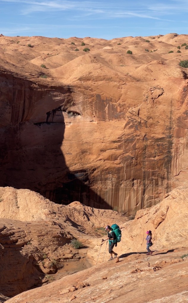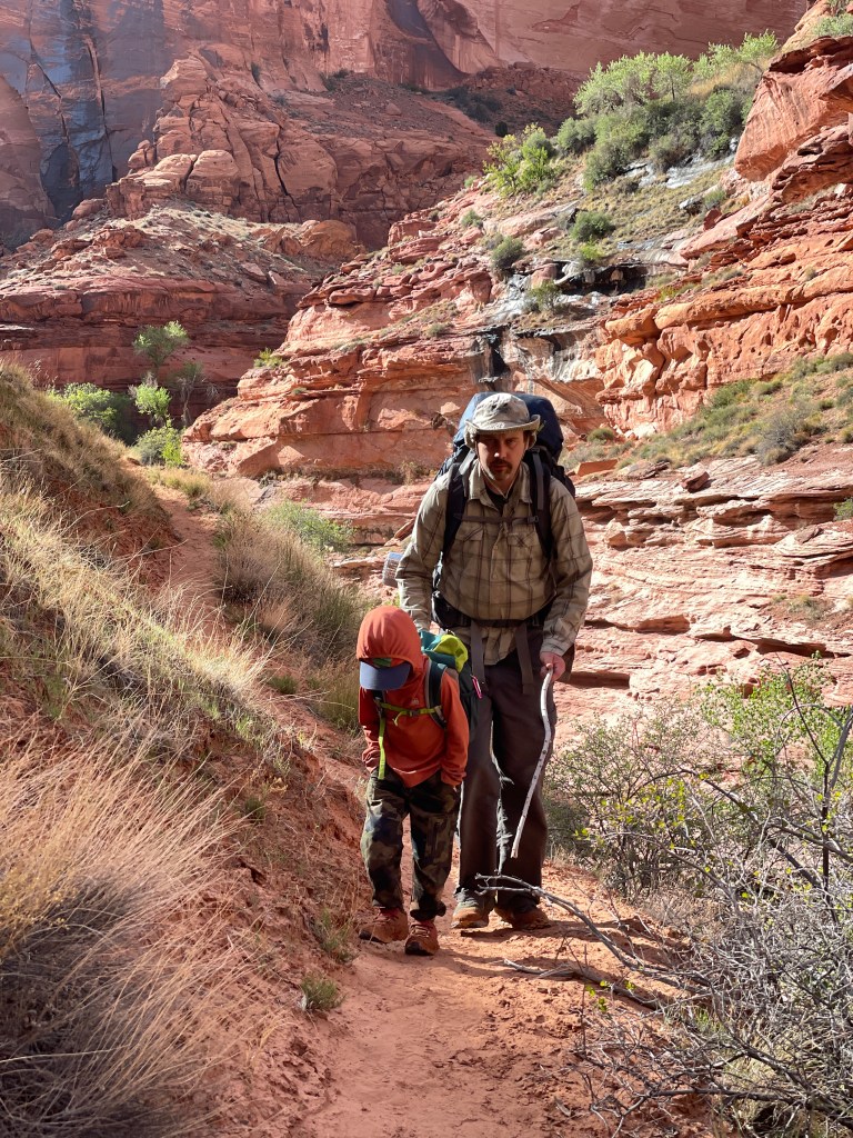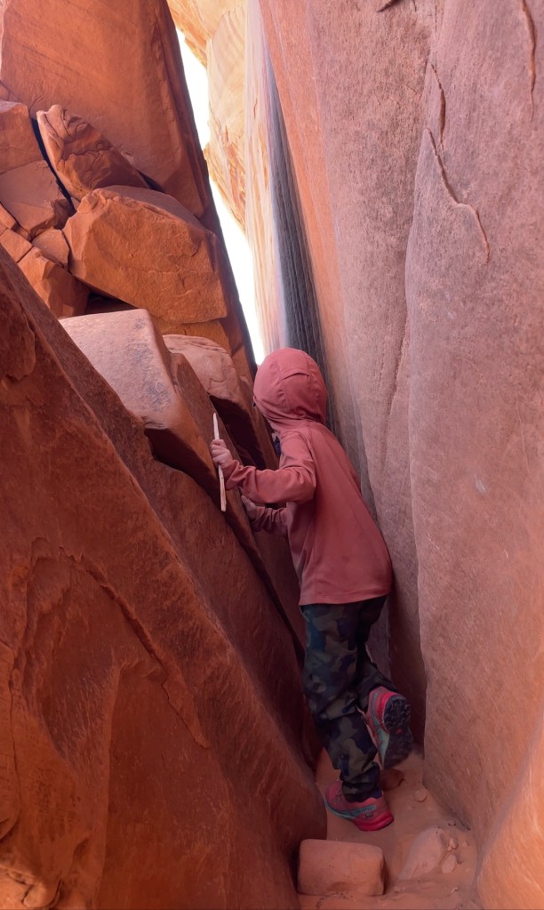 There are a lot of blogs out there with stats. I want to give a rundown of things I feel I didn’t know, but wished I would have. I combed the blogs and YouTube videos before attempting this with kids. In my opinion this is not friendly for most small children. If you hike with your small child on a regular basis and you can hike harder, longer miles and are comfortable with some exposure and slick down climbs they’ll be fine. Otherwise I’d wait till they’re a little older unless you enter and exit sneaker and have rappelling experience. Most families with small children did exactly this.